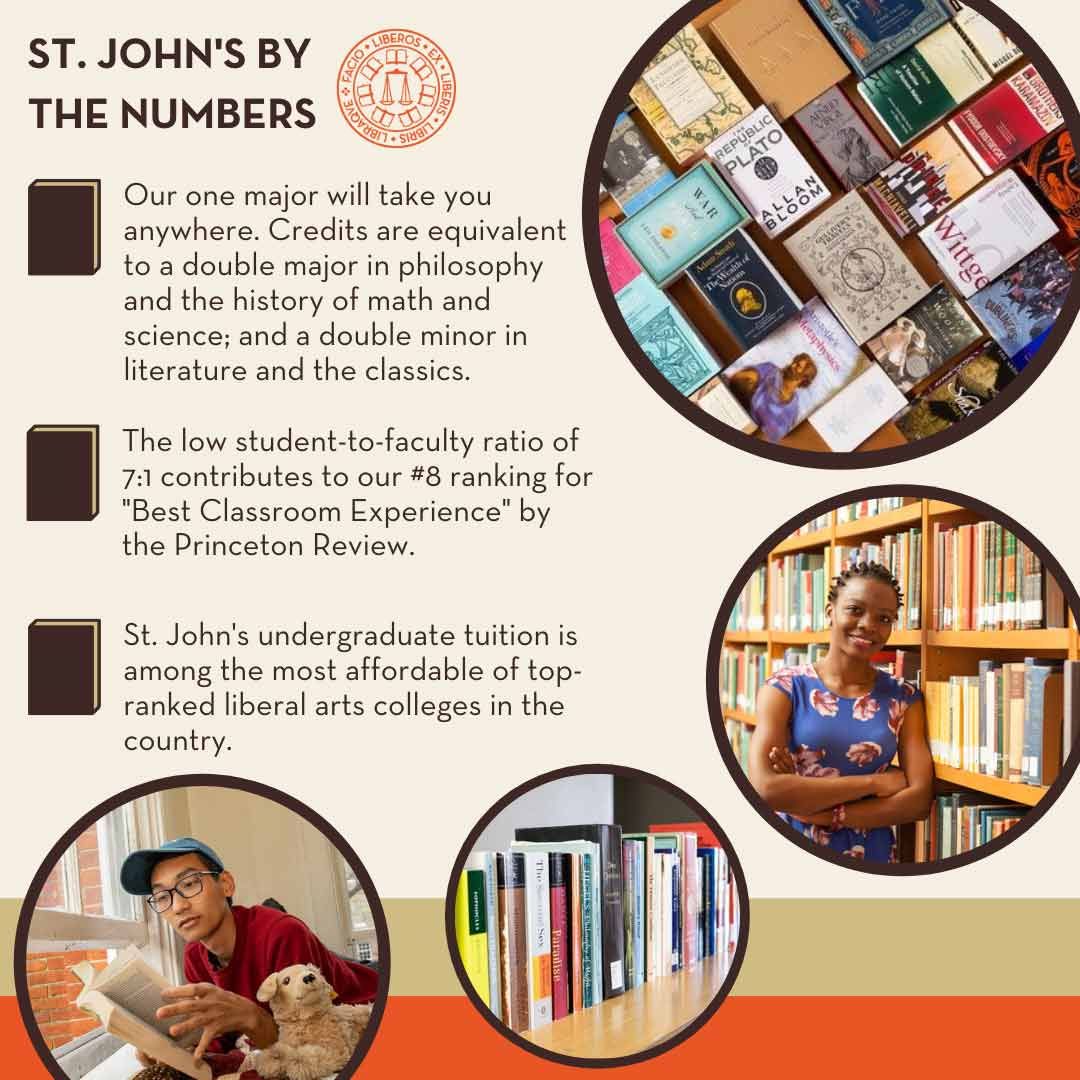 A All Johnnies share one trait: They love books and discussing big ideas. We are a community that unabashedly celebrates the life of the mind. About half of the curriculum is literature, philosophy, history, and language, while the rest is math and science. As a result, many students come to St. John’s because they do not want to choose between subjects they love.